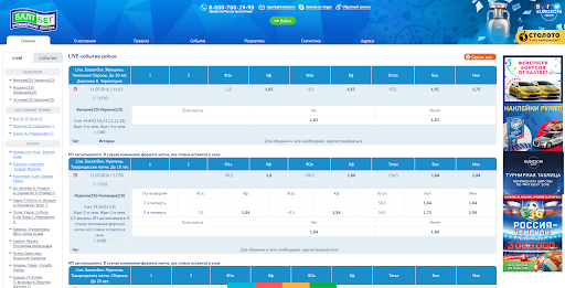 В верхней части ресурса находятсОфициальный сайт Балтбет на bookmakerbets.com.ua