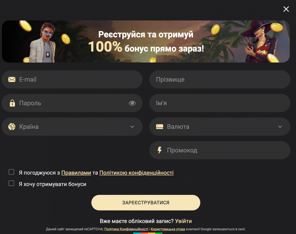 Подтверждаем согласие с правилами казино и создаем аккаунт.