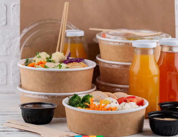 Ланч-боксы. Они бывают разных форм и размеров, изготовлены из разных материалов (картон, пластик или алюминий). Такой вариант одноразовой посуды достаточно удобен для транспортировки и хранения пищи.
