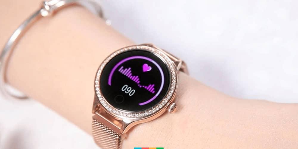 Це доступний жіночий смарт-годинник, що відрізняється непоганим співвідношенням ціни і якості. Їхня вартість варіюється в межах 1000 грн. Через наявність на годиннику великих кристалів, гаджет напевно сподобається дівчатам підліткового віку. Ремінець виконаний з металу, TFT дисплей і має невеликі рамки. Серед функцій варто виділити крокомір, моніторинг пульсу та режиму сну, а також 4 режими тренування.
