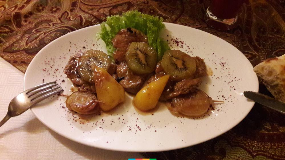 Відчуйте неймовірний аромат та дух Сходу, насолоджуйтеся найкращими стравами під звуки загадкових та манливих мелодій. Широка гамма кольорів теплих відтінків надає інтер’єру вишуканості та самобутності. Справжній камін зігріє Вас в холодну пору року та наповнить душу теплом та затишком. Пряні аромати смачної та якісної кавказької кухні, а особливо шашлик та м’ясна їжа, цікаві та різноманітні страви європейського столу задовольнять бажання кожного клієнта. Привітні офіціанти допоможуть зорієнтуватися в меню, а швидке та якісне обслуговування завжди чекає саме на Вас!
