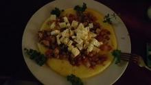 Довольно широкий ассортимент вкусных блюд,которые готовятся по заказу. Почти всегда мы заказываем запечённую форель с запечёнными овощами (здесь и баклажаны, и цветная капуста, и брокколи, и красный болгарский перец, и томаты. и картофель - всё большими ломтиками, и много зелени), которые готовят по заказу. Приносят горячими на огромных блюдах (как в Австрии).При виде всего этого глаза расширяются - как всё это съесть? Но за долгой, приятной беседой всё это потихонечку с огромным аппетитом поглощается. Долго ещё беседуем, не замечая времени. Признаться, не хочется уходить. Периодически я хожу сюда одна, чтобы полакомиться вкусненьким.